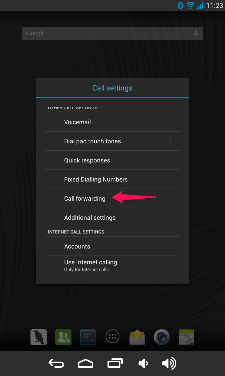 - Scroll down the menu and click on Call forwarding