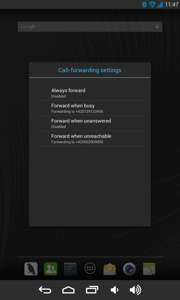 - Always forward – all your incoming calls will be automatically forwarded to another number which you configure.