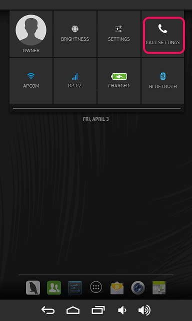 - Touch Raven display in its top right corner and swipe down. A menu will appear, click on Call settings.