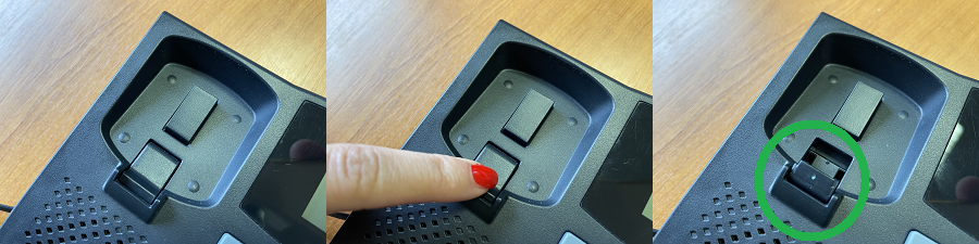 The handset support hook should be flipped out to hold the handset securely in place.