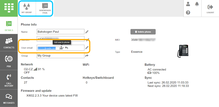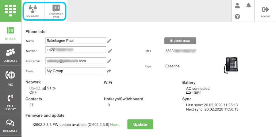 - In the phone administrator’s account Select phone group > Select phone to get on the phone detail screen.