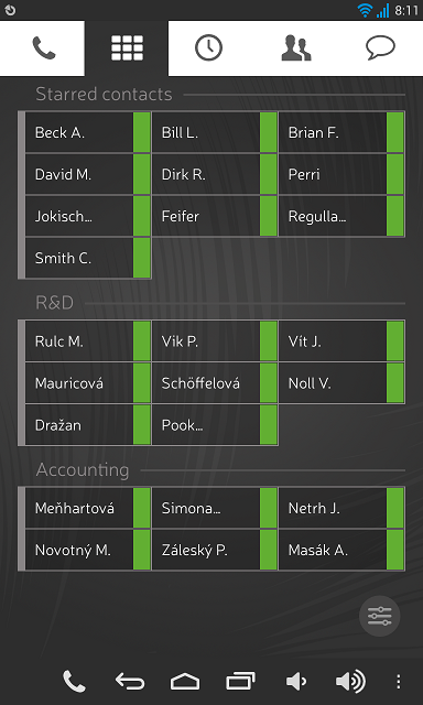 Switchboard is a built-in app of Raven phones enabling fast and comfortable dialling and call forwarding. It does the job of the extension panels on conventional office phones. Switchboard can be easily configured using the cloud administration.