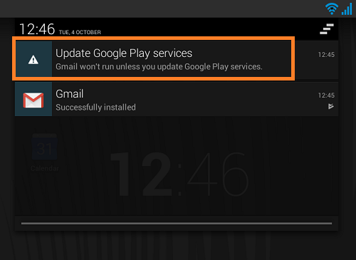 Note: Some apps may require update of other system services. You will be notified in the notification bar. Simply click on each warning and follow instructions.