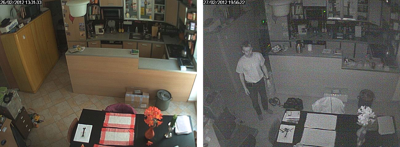 - The distance from the monitored object is less than 6 m. An example below shows difference between a room illuminated by daylight and IR light in a room of such dimensions.