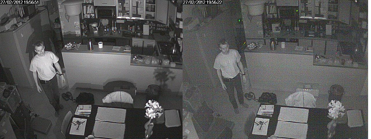 When you use external IR illumination, you obtain a brighter picture in comparison to the picture taken with internal IR illumination. Please compare the two pictures below.