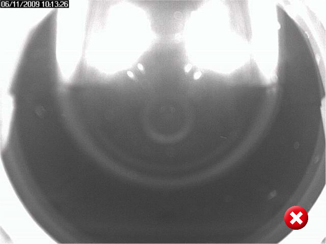 - There is no plastic or glass (window, outdoor housing, etc.) placed between the camera and the monitored object. Below, you can see a picture taken by the camera using internal IR illumination while a plastic/glass was placed in front of the lens. An outdoor camera cover with front glass was used in this case.