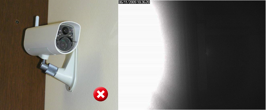 - There are no objects in front of the camera zone emitting IR light. If there is an object directly in front of the camera zone emitting IR light, this object reflects emitted IR light back to the lens. The object causing the reflection is then very bright and the picture quality is reduced.